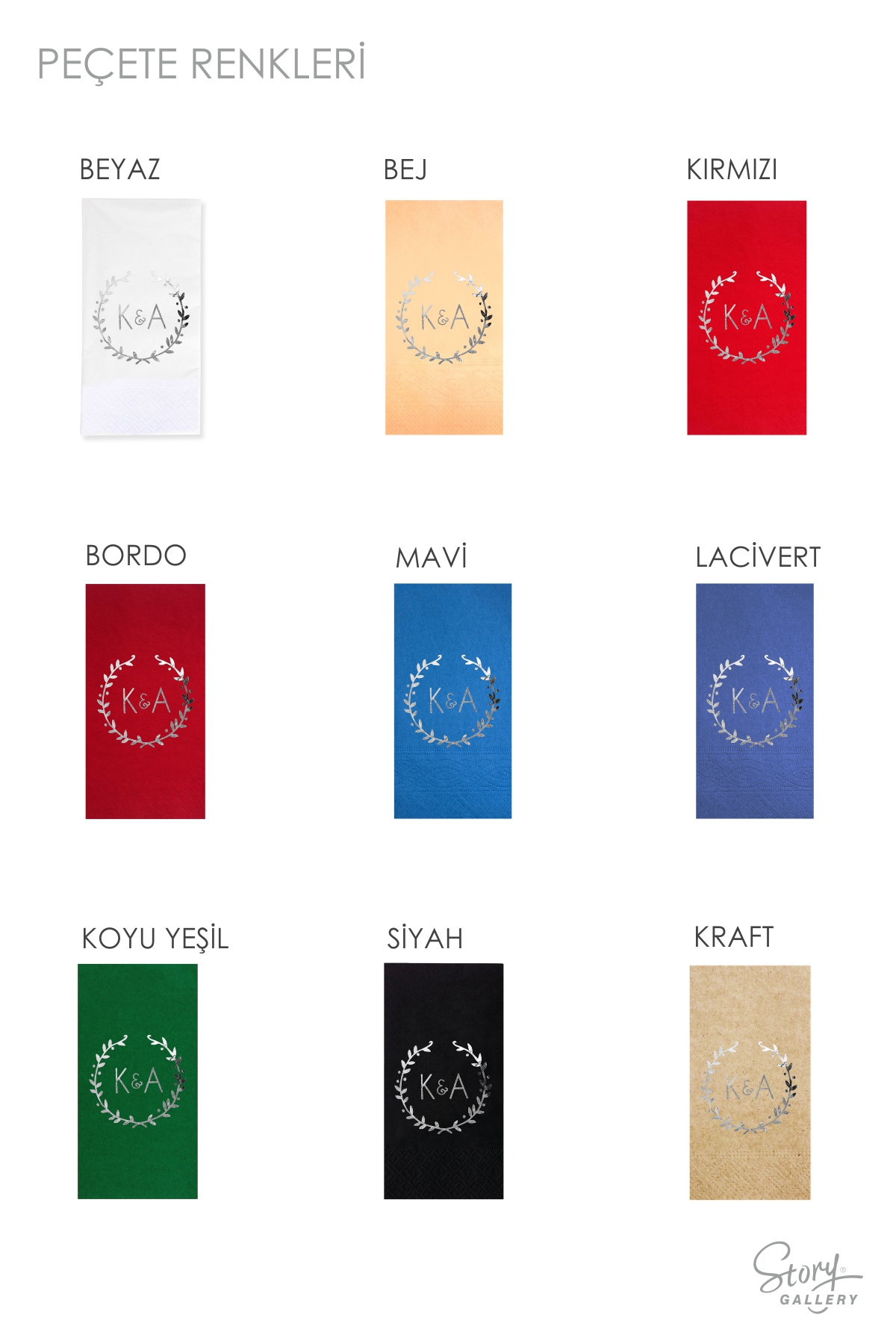 • PEÇETE RENGİ:  Ürün görsellerinde bulunan peçete rengi seçin